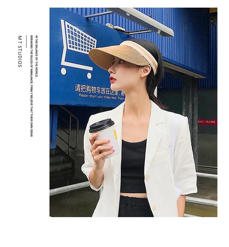 帽子 レディース 中空トップ ひさし帽子 レディース 夏 顔を覆う 日焼け防止 サンハット 日よけ トップレス ホリデー 麦わら帽子 夏 サマー 夏物 15dd37829733948