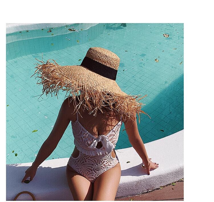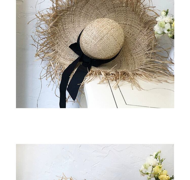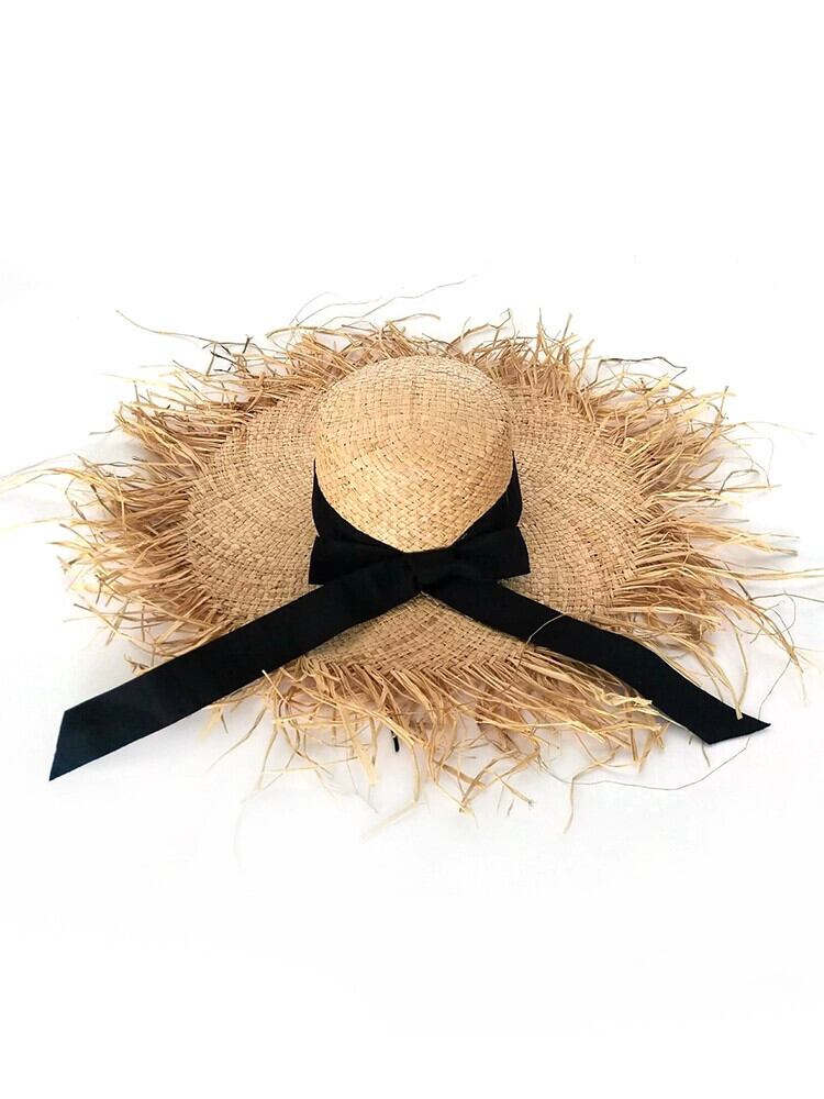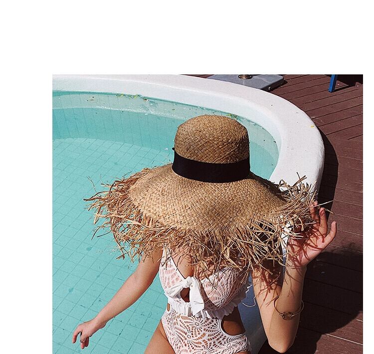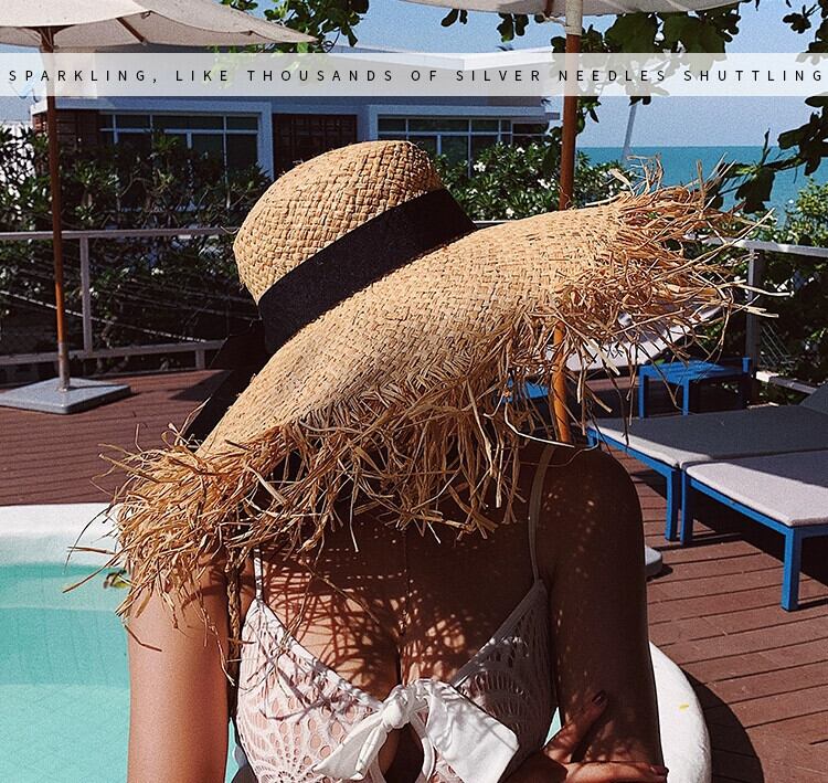 夏の海辺の休暇特大つばサンシェードと日焼け止め麦わら帽子、同じスタイルの女性のビーチ旅行ファーエッジ麦わら帽子 サマー 夏物 15dd64548932317