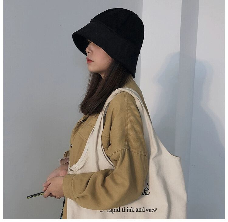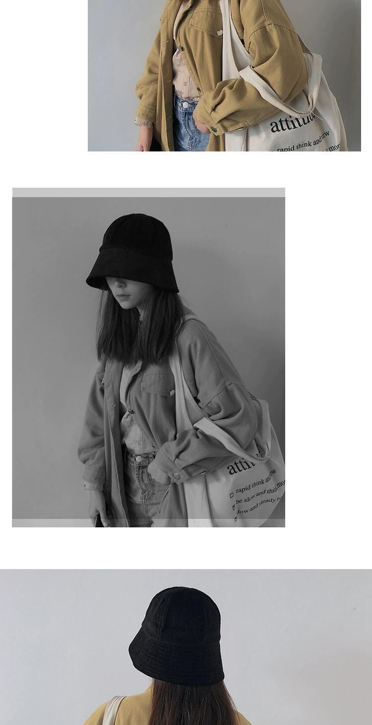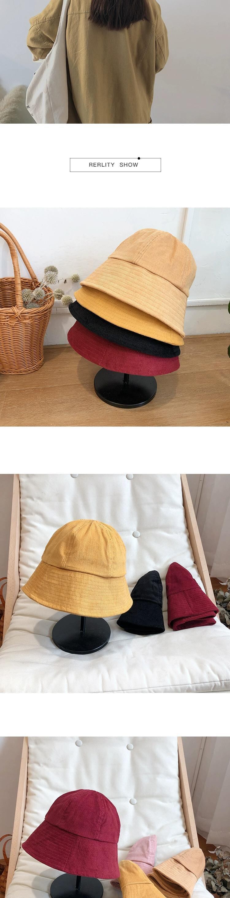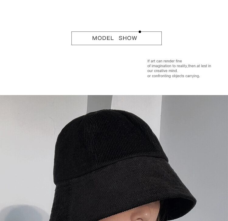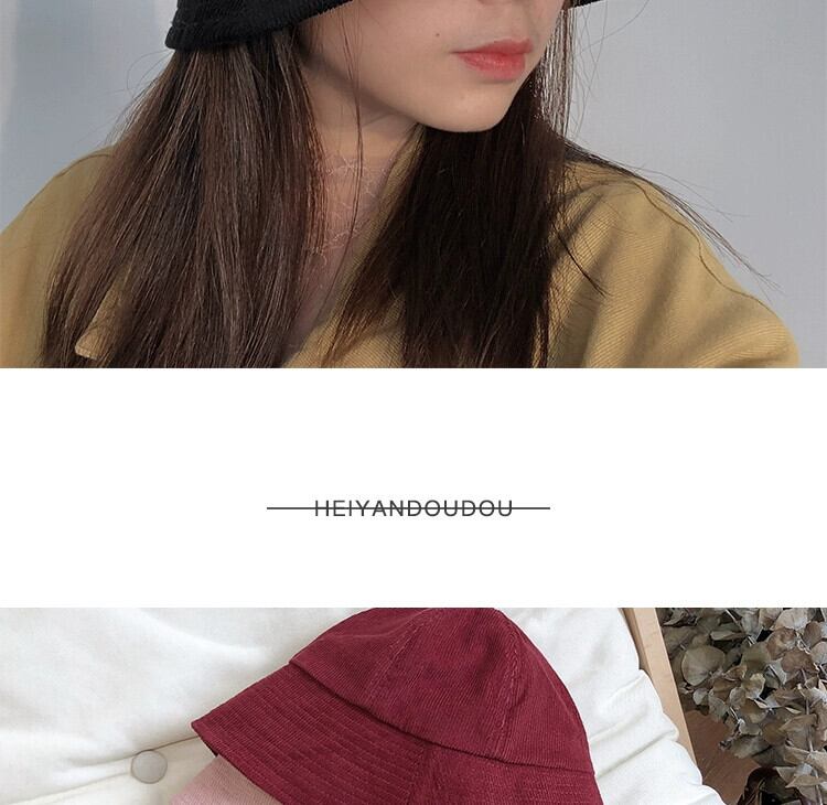 スタイル潮バケツカバー顔コーデュロイ漁師帽子女性インターネット有名人秋と冬インス鐘形黒盆地帽子冬 ブラック オータム 秋物 ウィンター 冬物 15dd18847170361