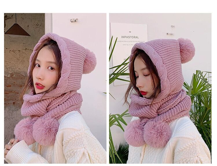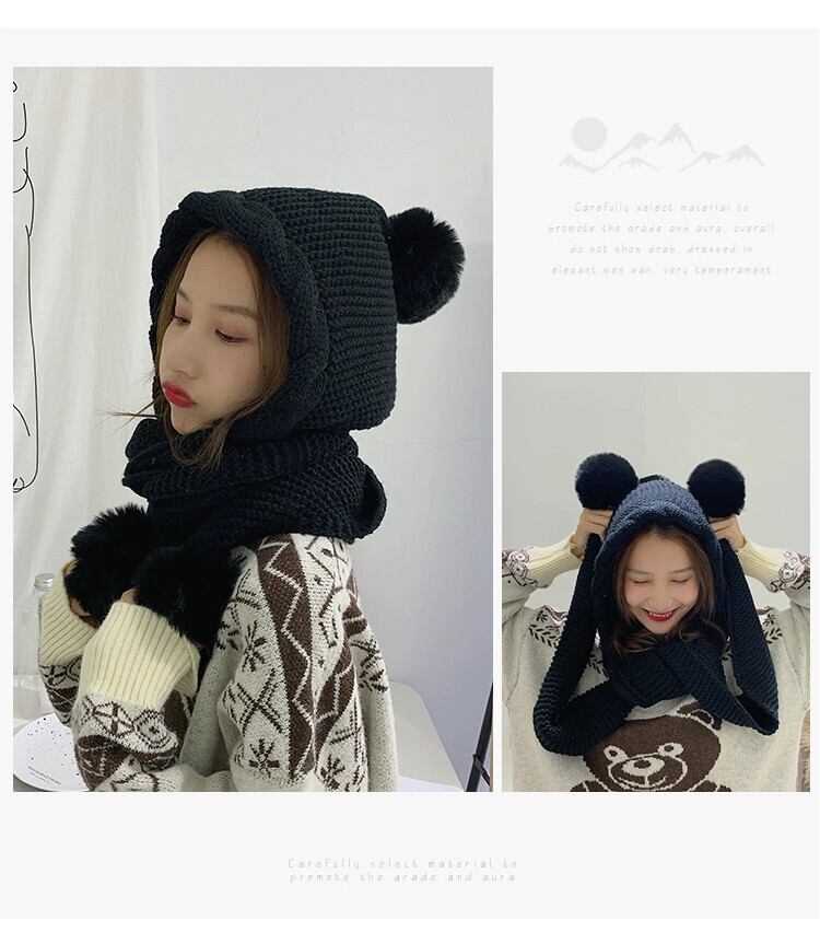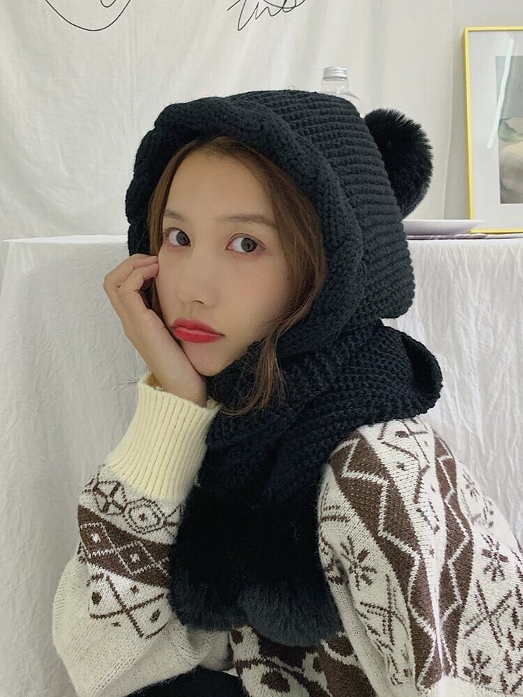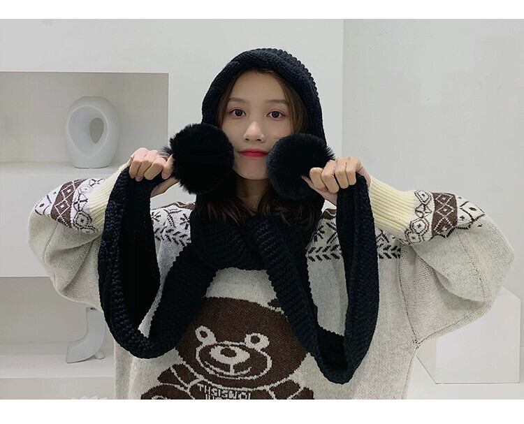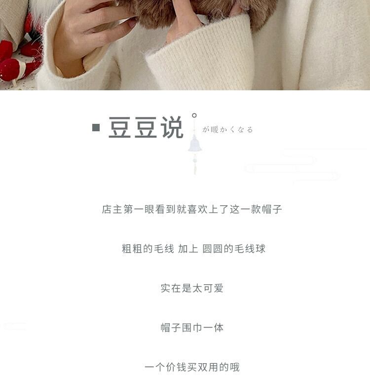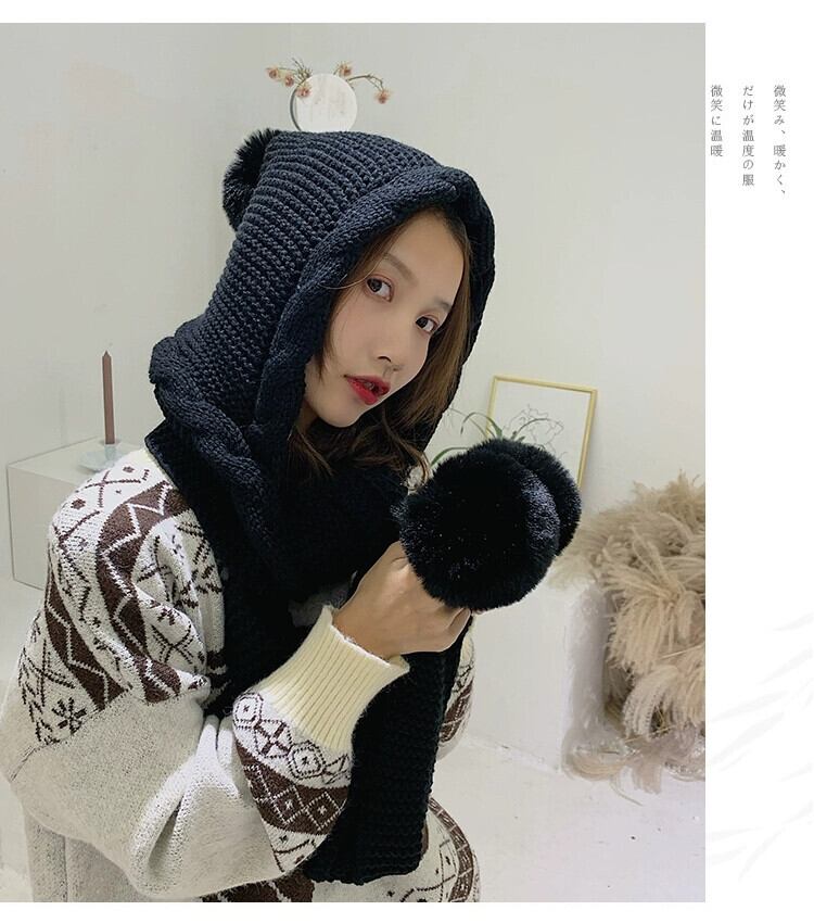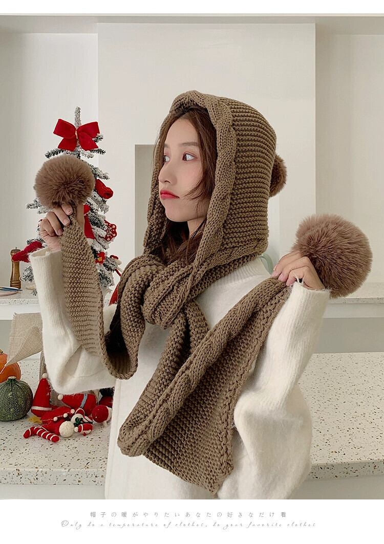 秋冬のウールの帽子の女性スタイルの多目的帽子、冬のスカーフ付きかわいい耳の保護厚く暖かいニット帽 大人ガーリー スウィート キュート カジュアル オータム 秋物 ウィンター 冬物 15dd35692738480