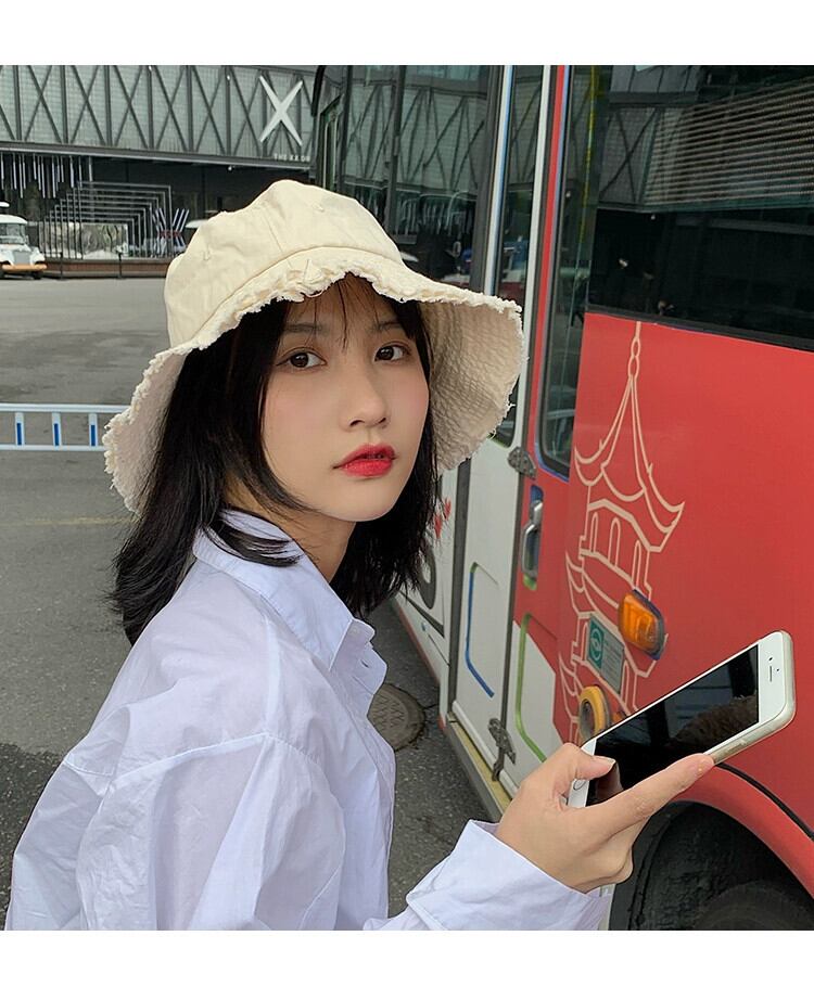 漁師の帽子の女性のバージョンのトレンディな多用途の ese ソリッドカラーの帽子夏生エッジ広つばフェイスカバー日よけ盆地帽子 サマー 夏物 15dd93438808637