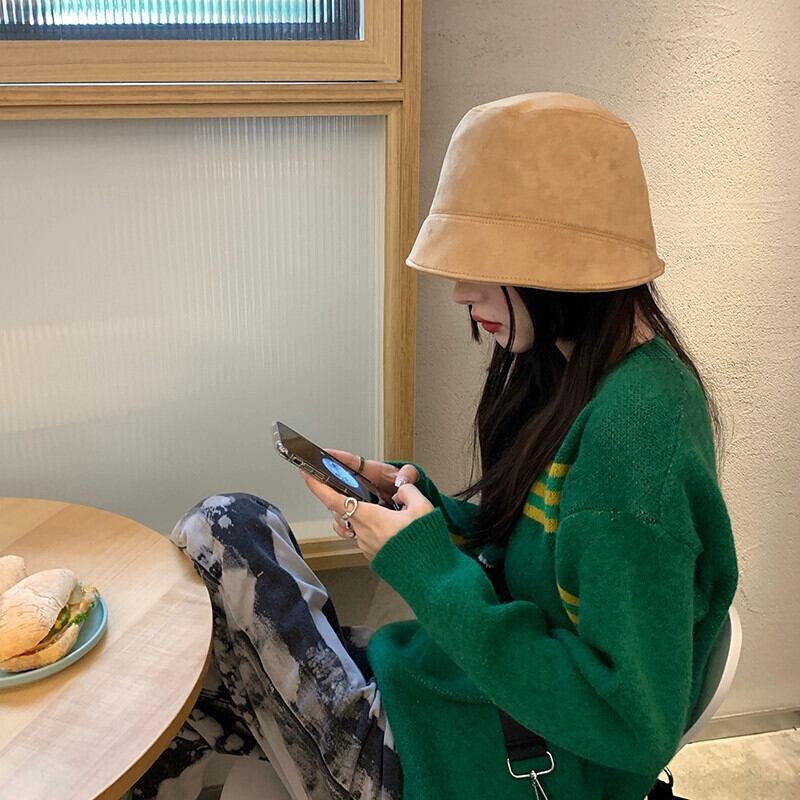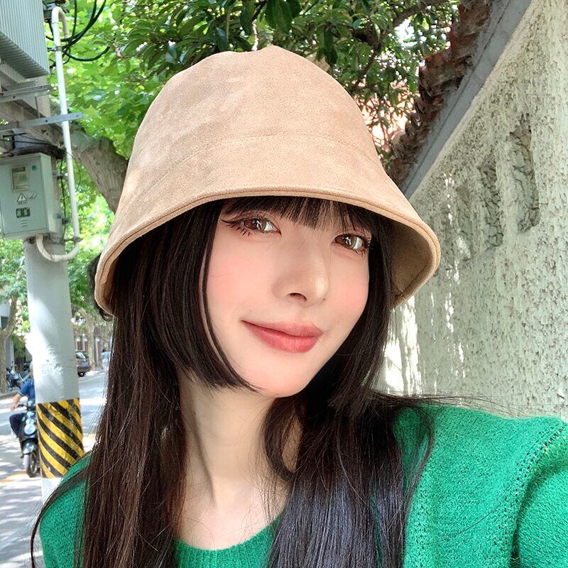 漁師帽子女性の秋秋冬厚いスエード短いつば顔明らかに小さな禁欲バケットハットバージョン多用途 ese 帽子 ショート スウェード オータム 秋物 ウィンター 冬物 15dd37936373619