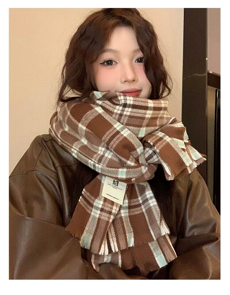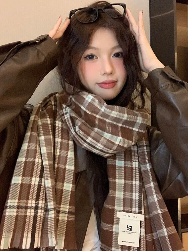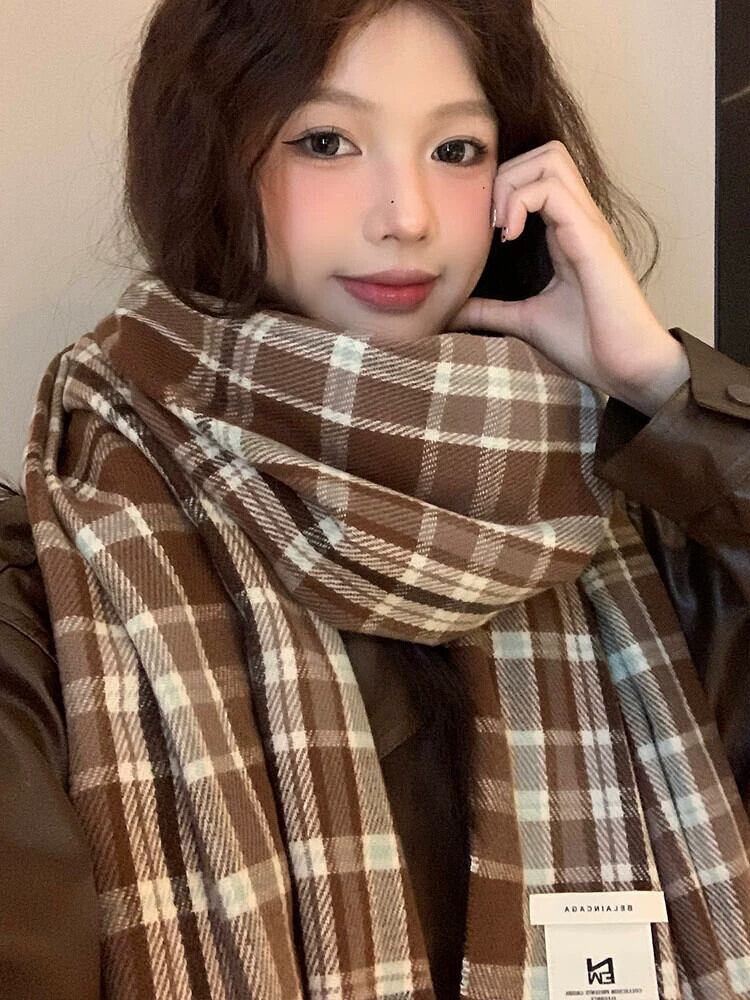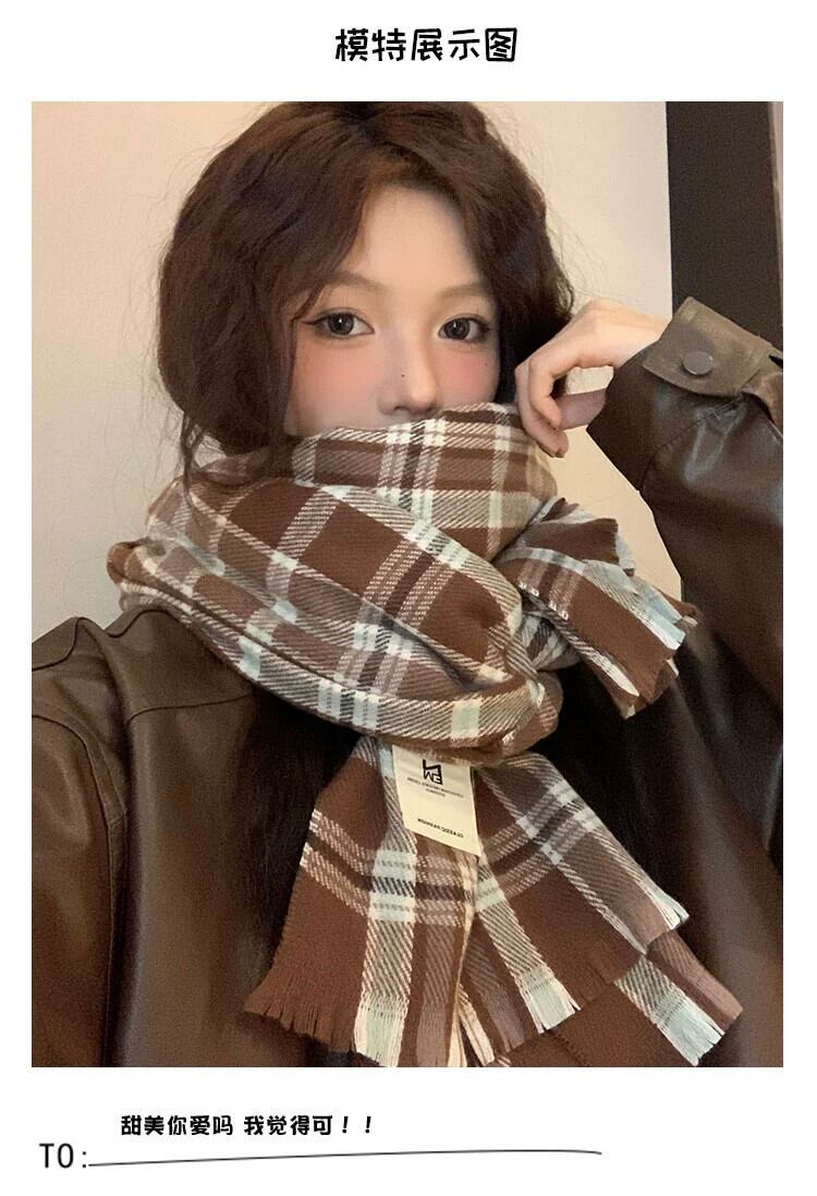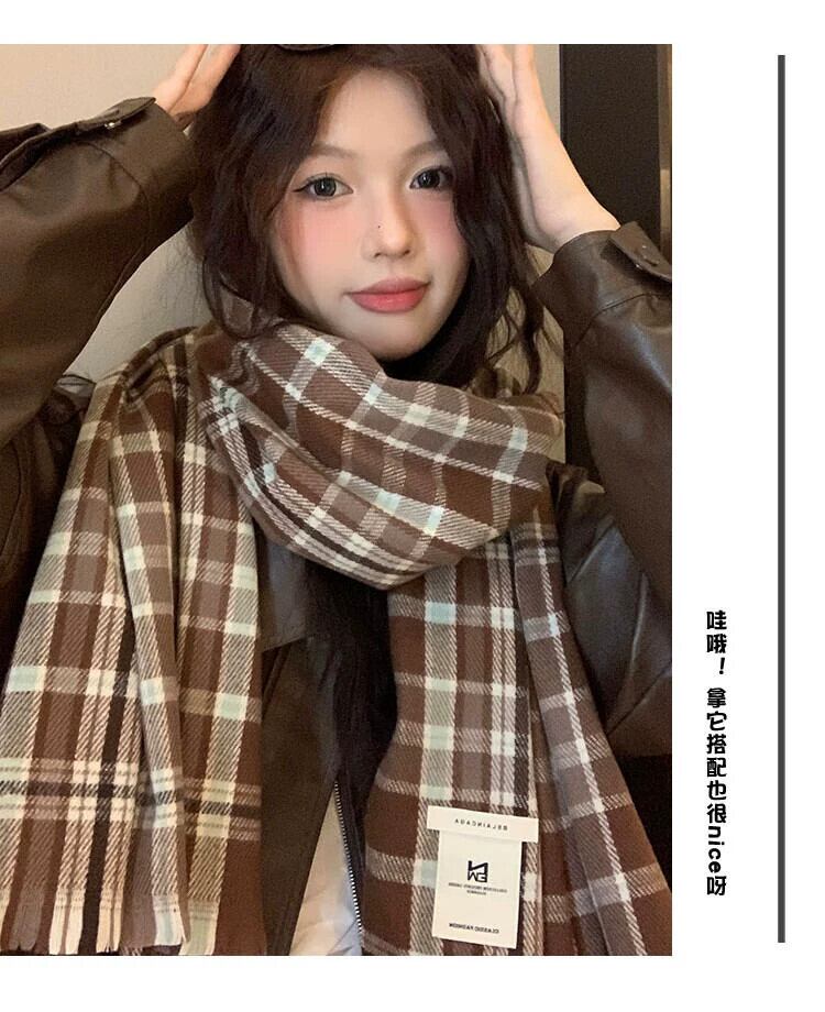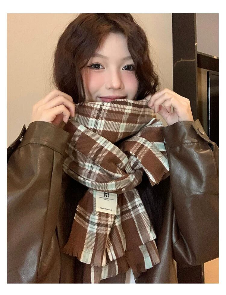 メイラードチェック柄スカーフ女性秋と冬 2023 新入生カップル模造カシミヤショールスタイル暖かいスカーフ オータム 秋物 ウィンター 冬物 15dd64175567686
