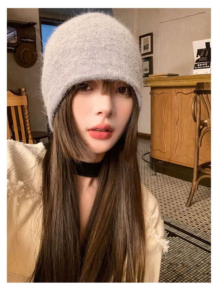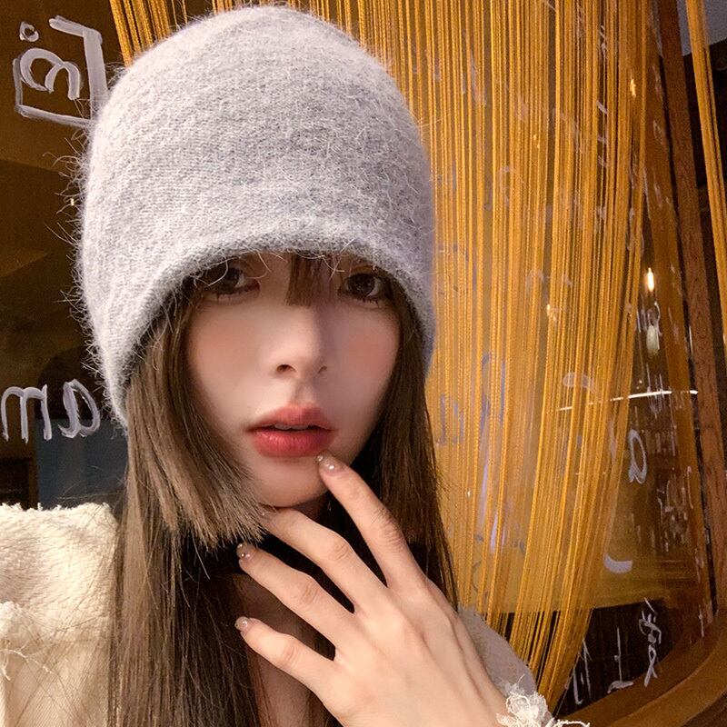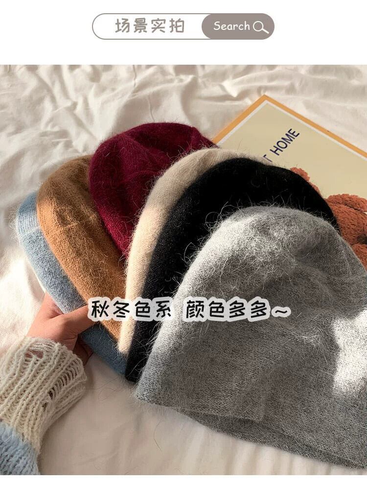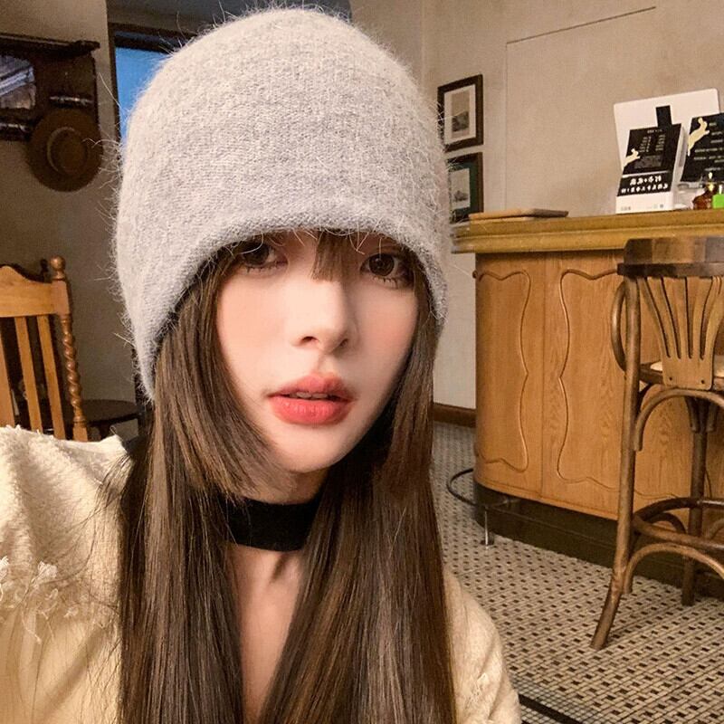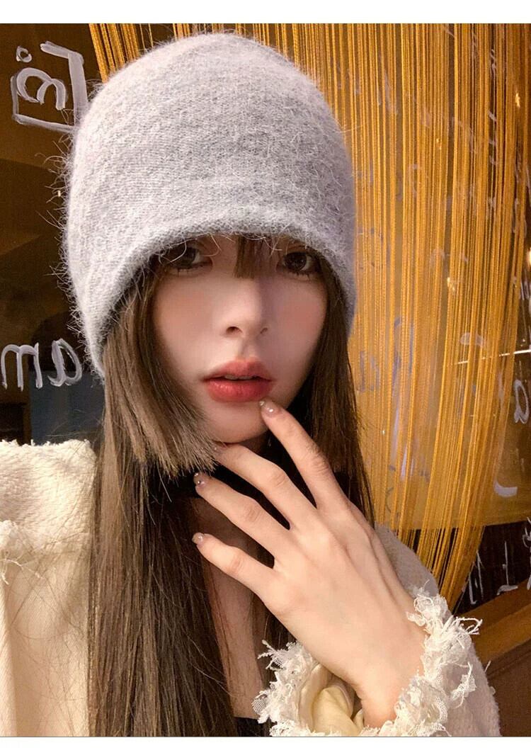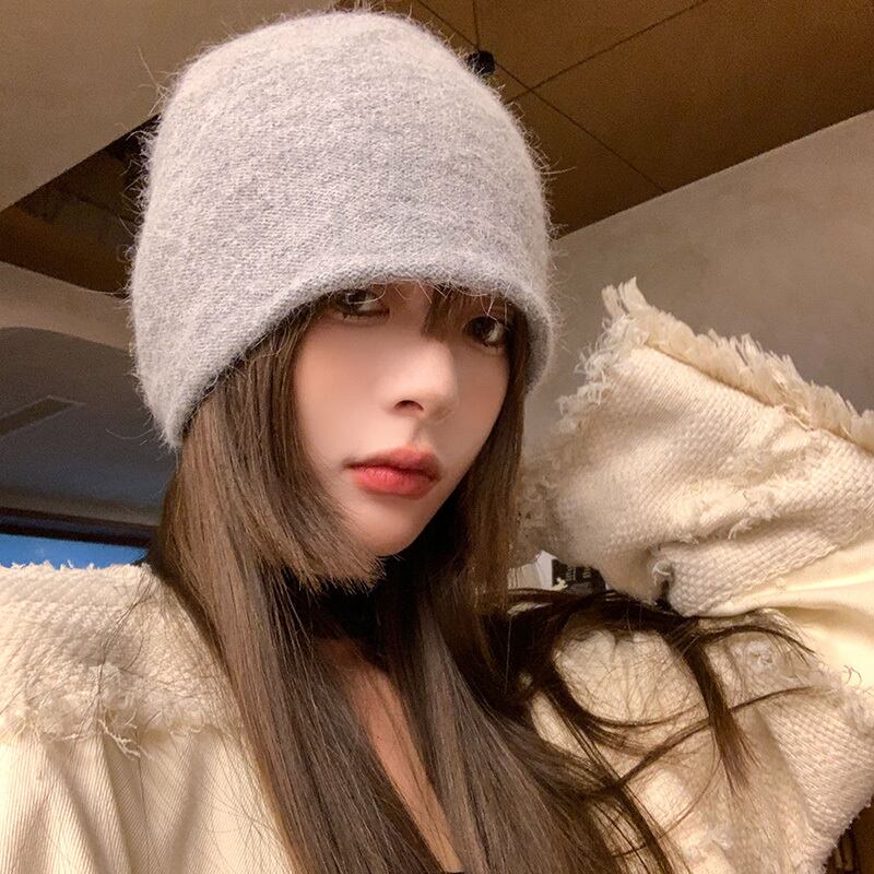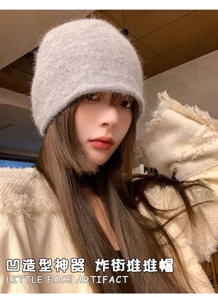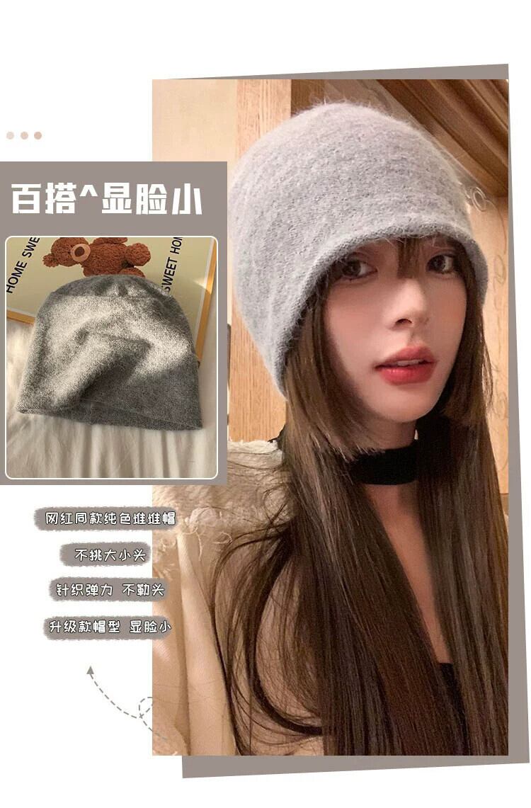 女性のウールの帽子秋冬 2023 新しいスタイルオールマッチ顔見せ小さなニット帽子厚くて暖かい大きな頭囲パイル帽子 オータム 秋物 ウィンター 冬物 15dd34528124361