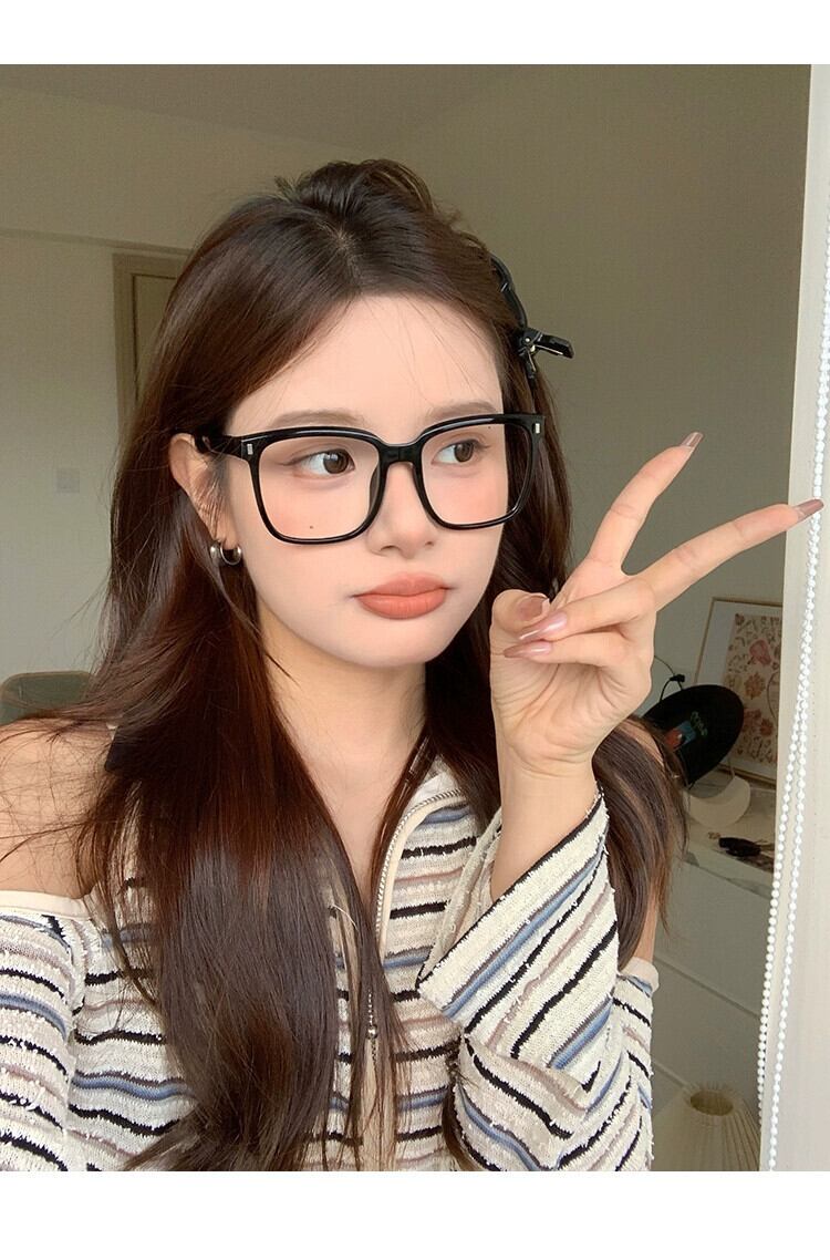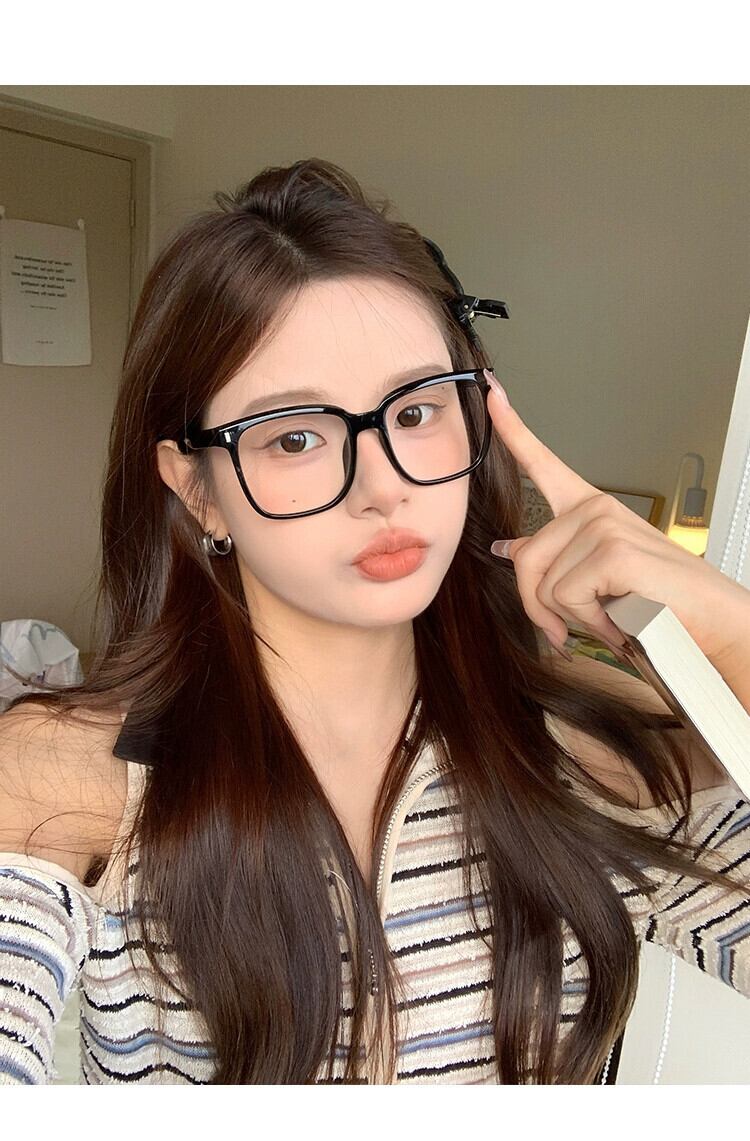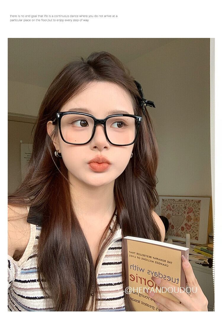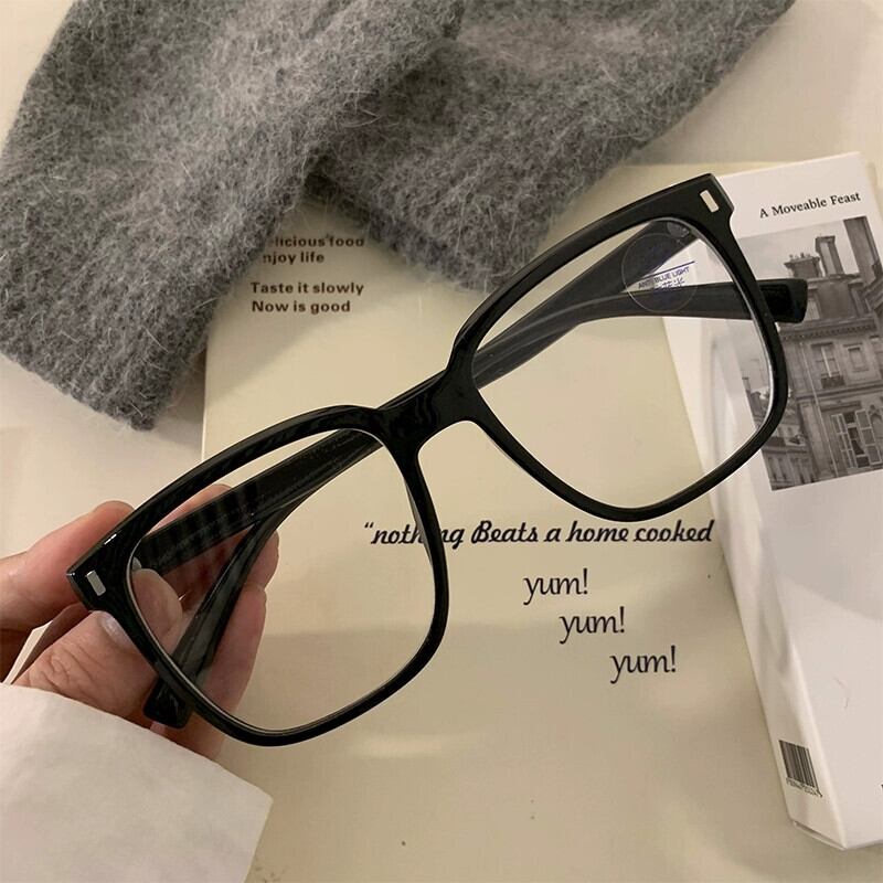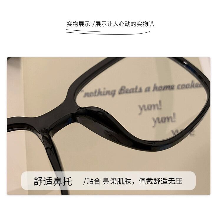 - メイクアーティファクトなしのブラックフレーム、大きな顔痩身グルスフレーム、女性用ライトラージフレーム、ブラックスタイル、トレンディなフラットミラーグルス。 15dd8670614583