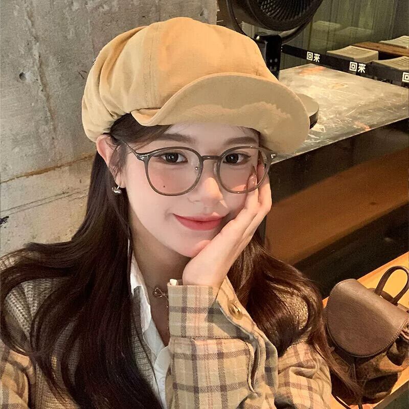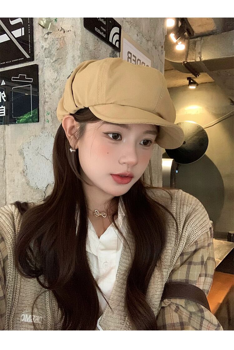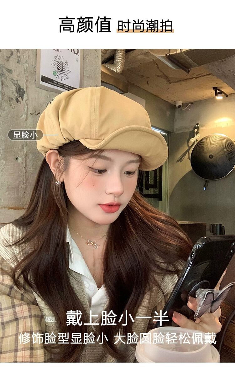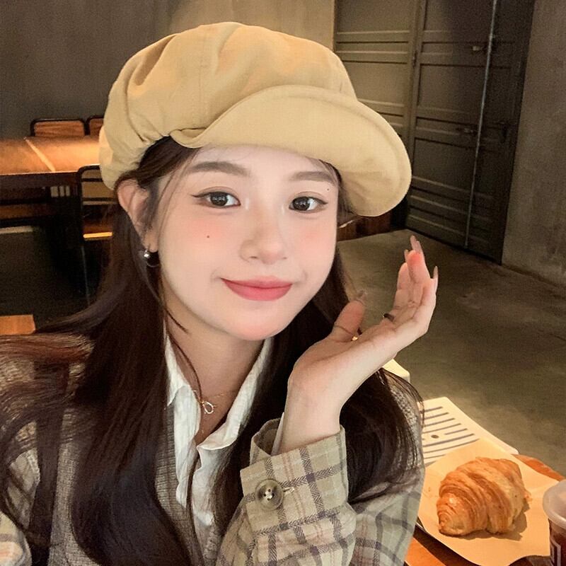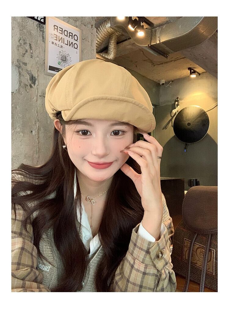ese レトロベレー帽女性の秋と冬のカジュアルバージョンオールマッチ八角形帽子大きな頭囲画家の帽子は小さな顔を示します オータム 秋物 ウィンター 冬物 ベレット ヘアアクセサリー 15dd54775591517