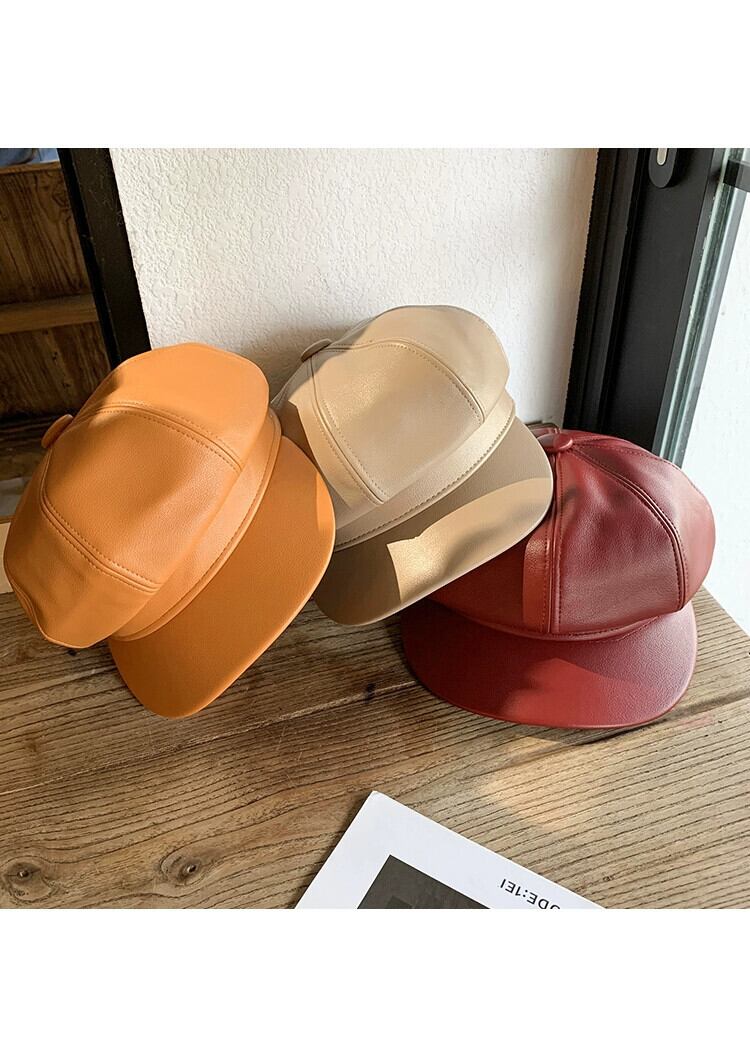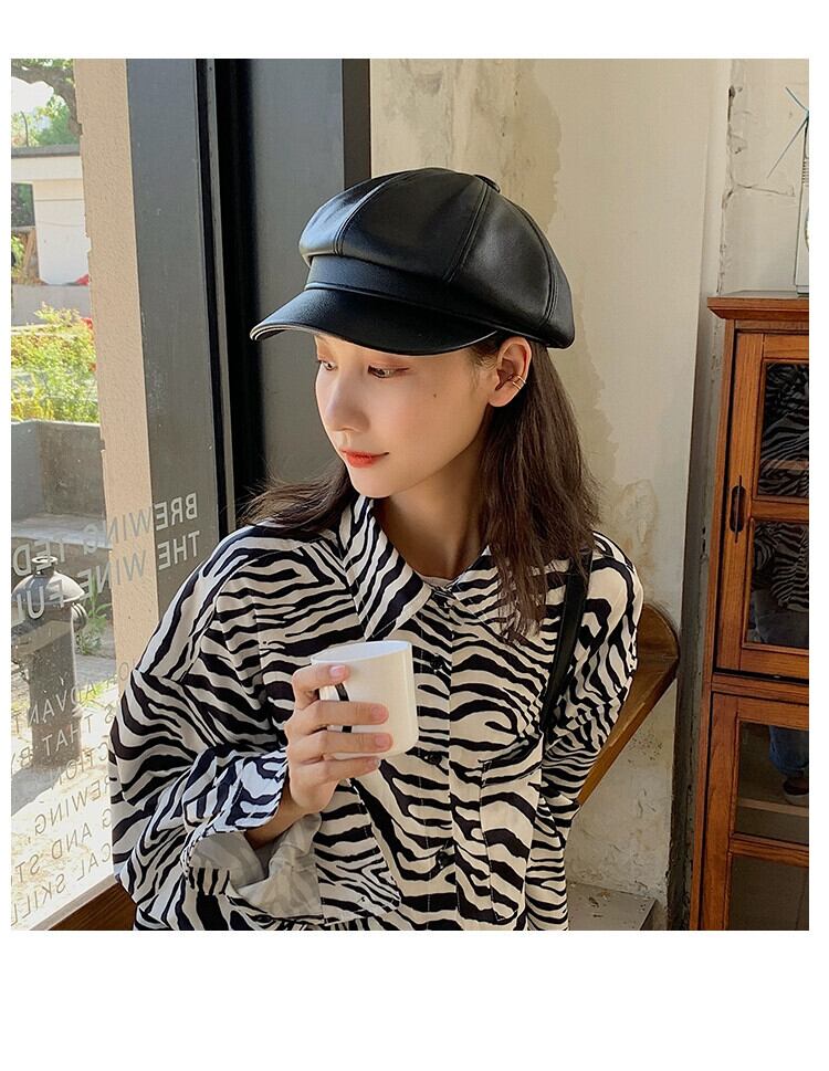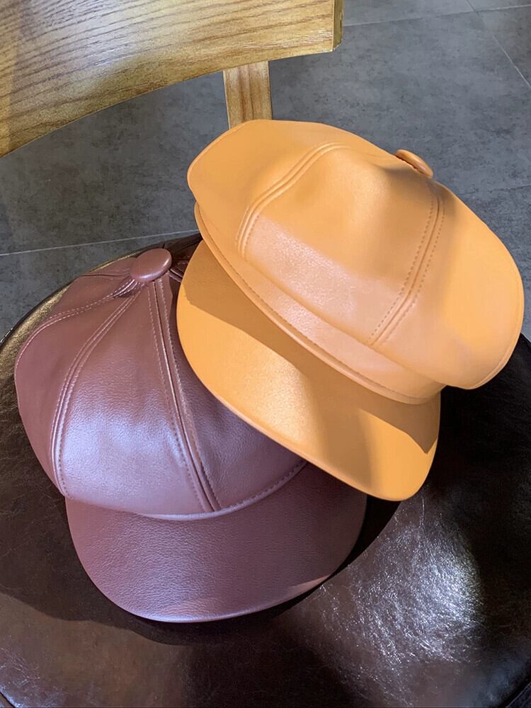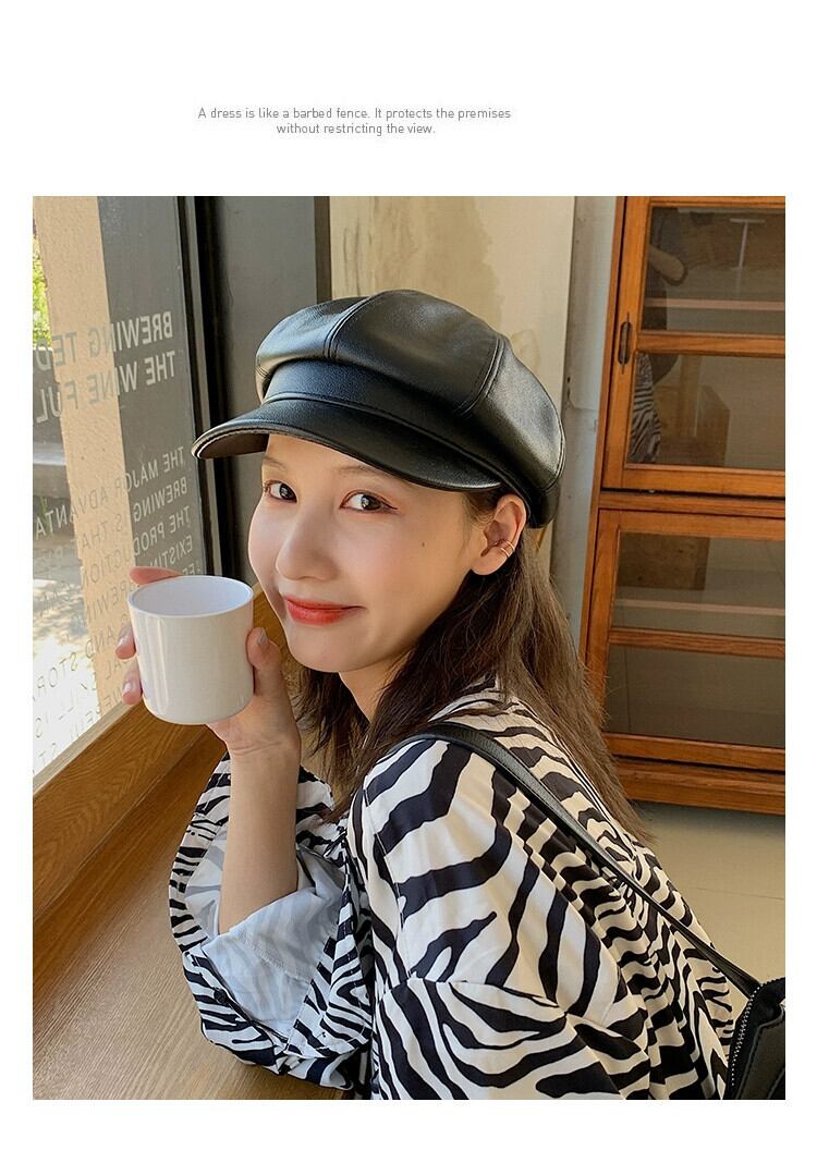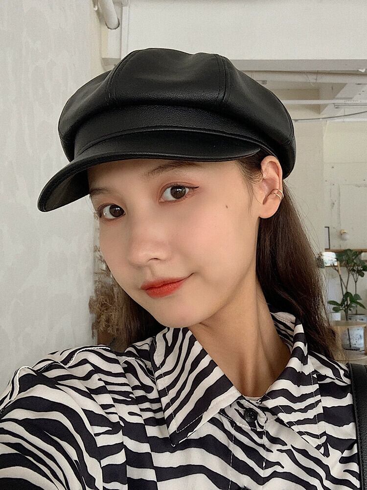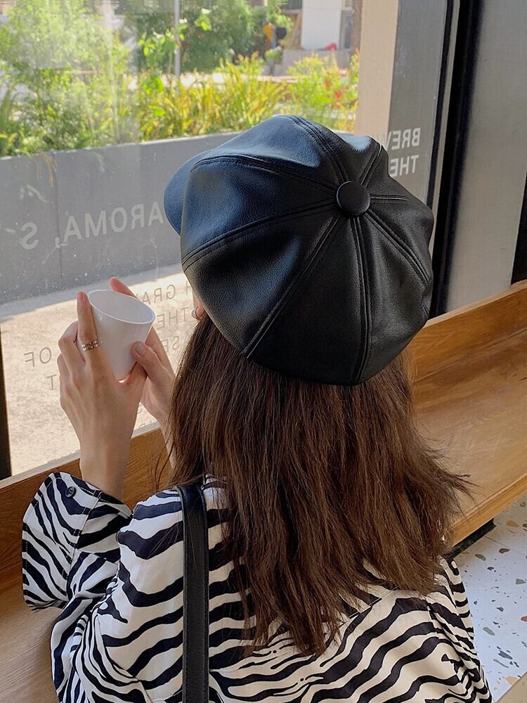 Pu レザー八角形帽子女性秋と冬バージョン英国のレトロなベレー帽イン多目的 ese インターネット有名人画家帽子 オータム 秋物 ウィンター 冬物 ベレット ヘアアクセサリー 15dd59369936174